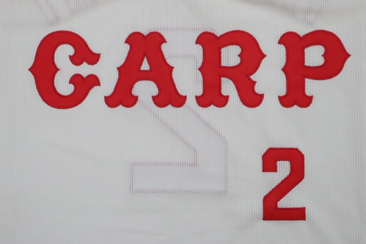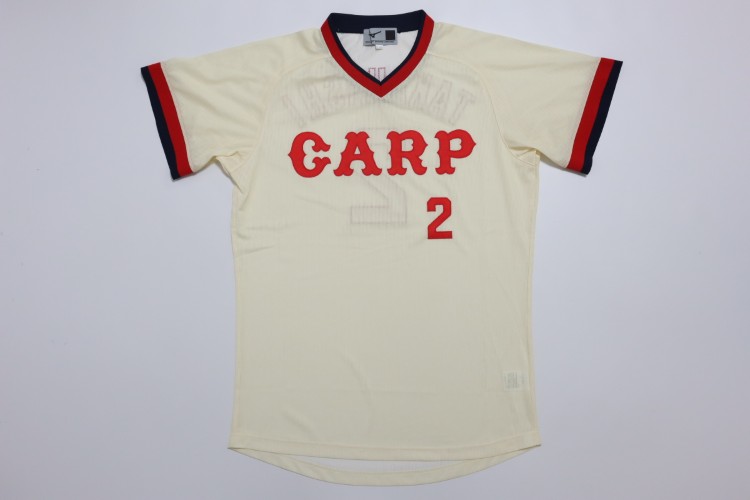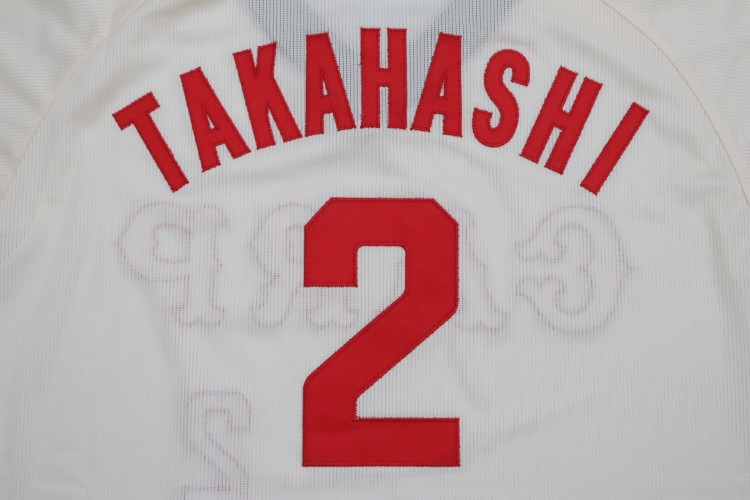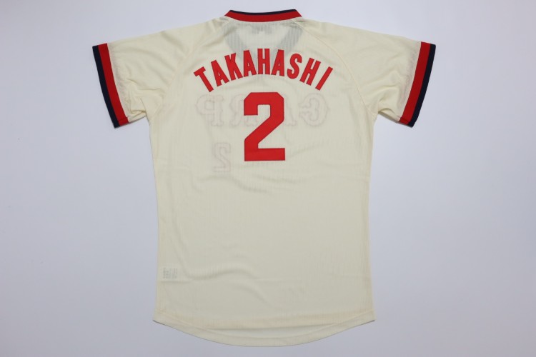 1977-1987 Hiroshima Toyo Carp home high quality remake jersey. All of the logos are embroidered on the jersey with Takahashi’s name and his number 2. Made in China, Mizuno Japan official licensed jersey.
