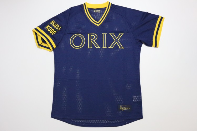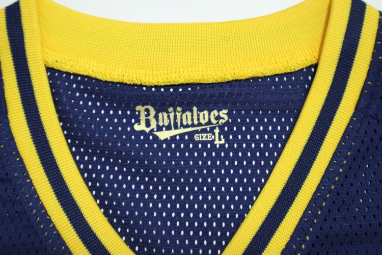1995-1998 Orix Bluewave away remake mesh jersey. All of the logos are embroidered on the jersey. This is 1995-1998 season’s remake jersey of Orix Bluewave when Ichiro Suzuki was still a member of the team. Made in China, Buffaloes official licensed jersey.