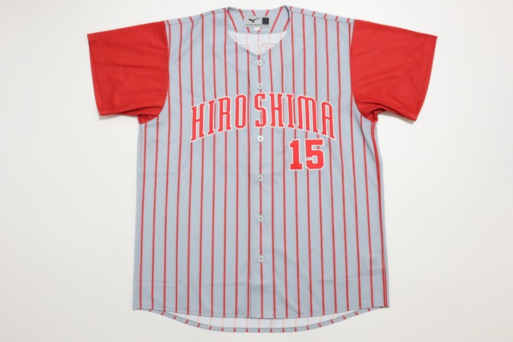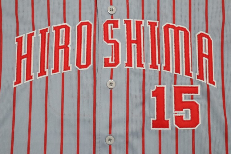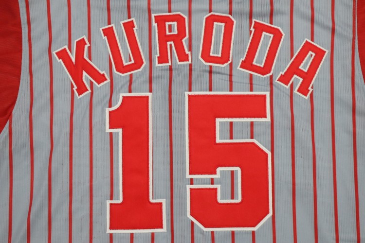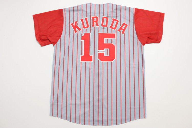 2002-2006 Hiroshima Toyo Carp away high quality remake jersey. All of the logos are embroidered on the jersey with Kuroda’s name and his number 15. Made in China, Mizuno Japan official licensed jersey.