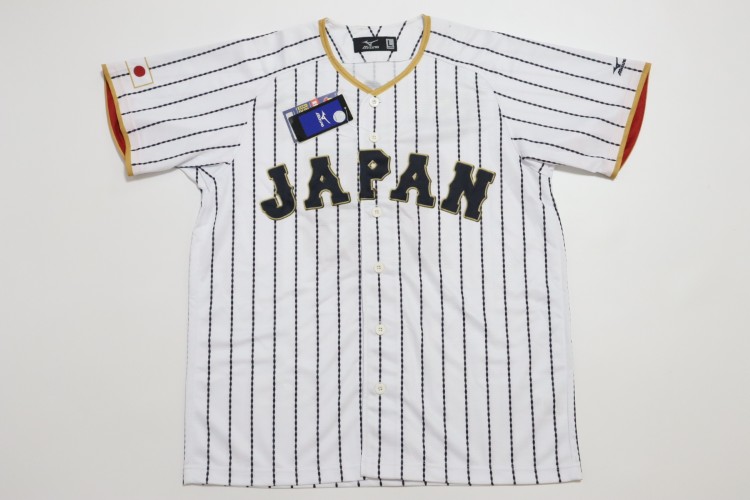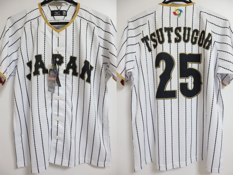 2016-2017 Samurai Japan official baseball home jersey. Tsutsugoh’s name and his number 25 are printed on the back. Logos are sublimation print. Japan national team worn these type of jerseys at the 2017 World Baseball Classic. Made in China, Mizuno Japan official licensed jersey.
