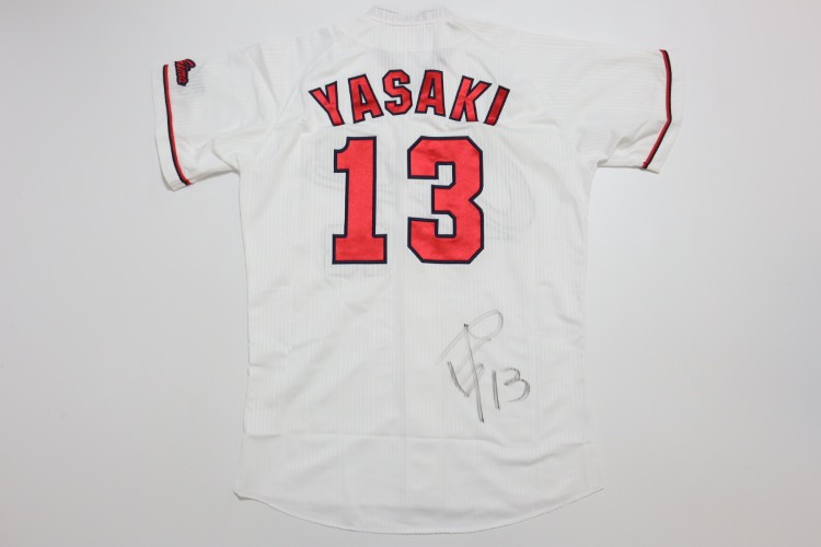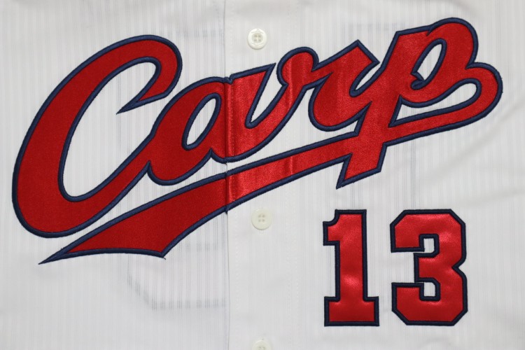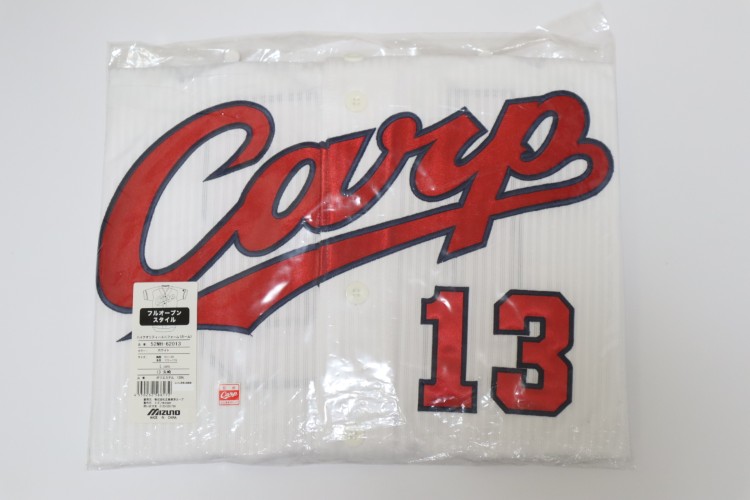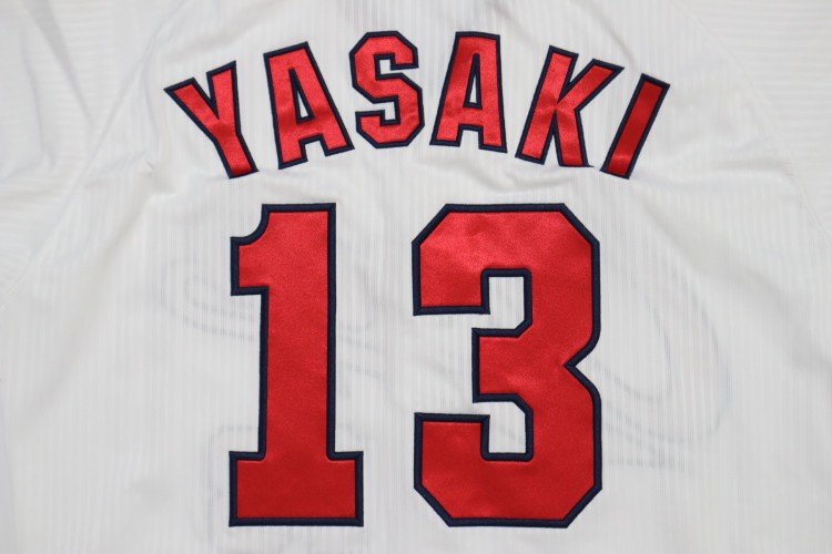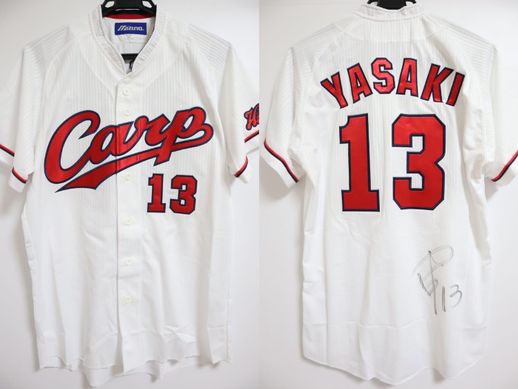 2017-2020 Hiroshima Toyo Carp home high quality jersey. All of the logos are embroidered on the jersey with Yasaki’s name and his number 13. Made in China, Mizuno Japan official licensed jersey.