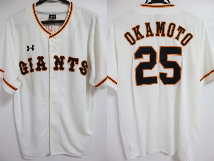 2018-2020 Tokyo Yomiuri Giants home jersey. All of the logos are embroidered on the jersey with Okamoto’s name and his number 25. Made in Thailand Under Armour Japan official licensed baseball jersey.