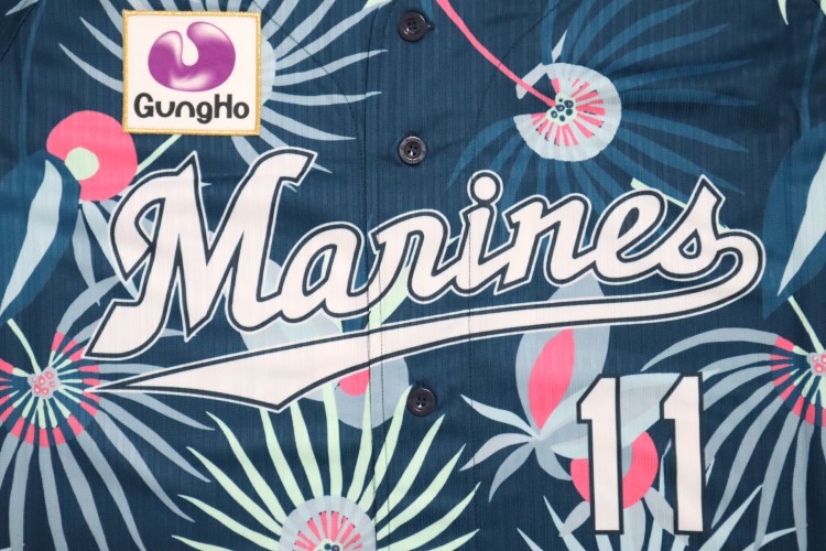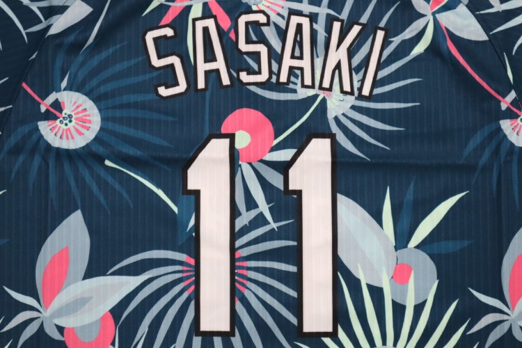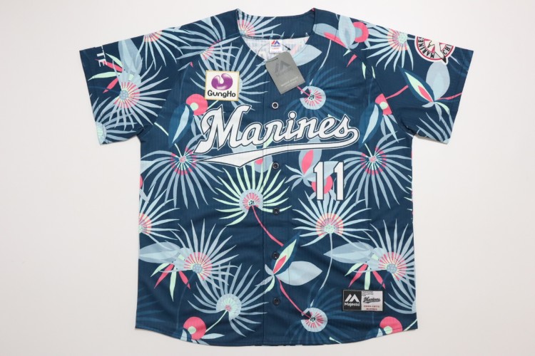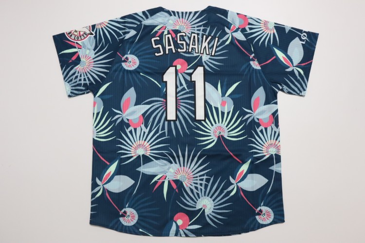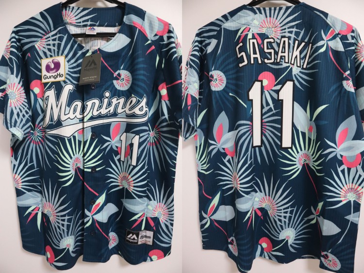 2018 Chiba Lotte Marines fifth summer limited jersey. Sasaki’s name and his number 11 are printed on the jersey. They are sublimation print. Players worn this design of the jersey at only 13 home matches during summer season, called “Makuhari Summer Stadium 2018”. Made in Thailand, Majestic Japan official licensed jersey.