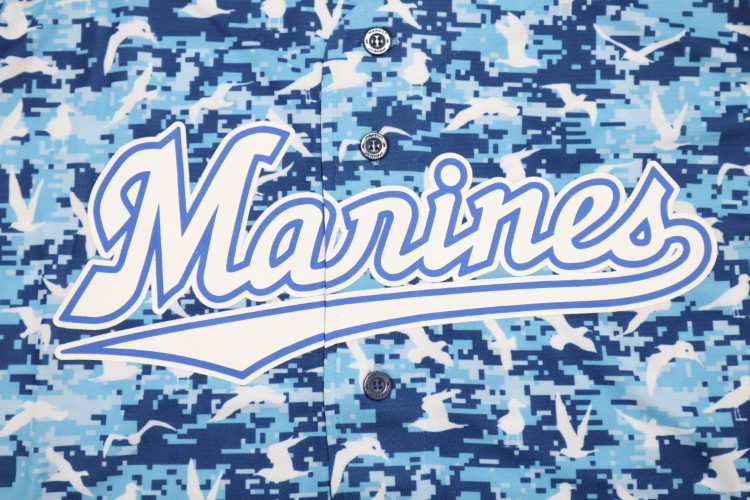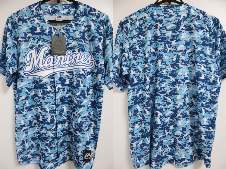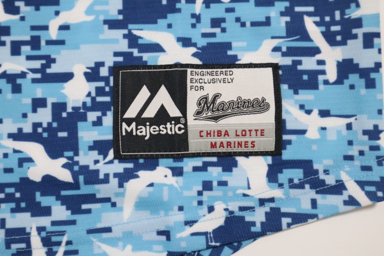2018 Chiba Lotte Marines fourth Marine Festa jersey. Players worn this design of the jersey at only 6 home limited matches, called Marin Festa in 2018 season. Made in China, Majestic Japan official licensed jersey.
