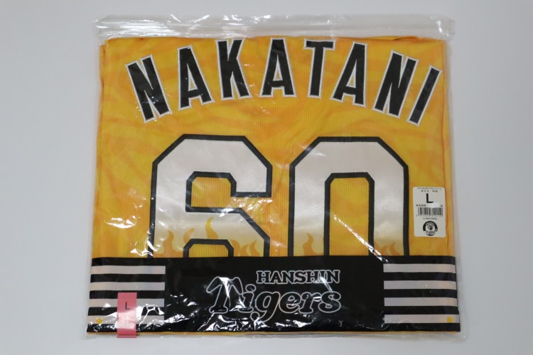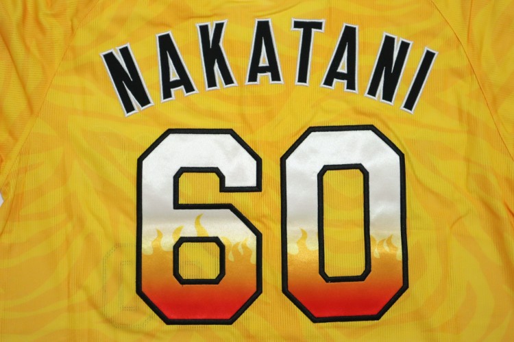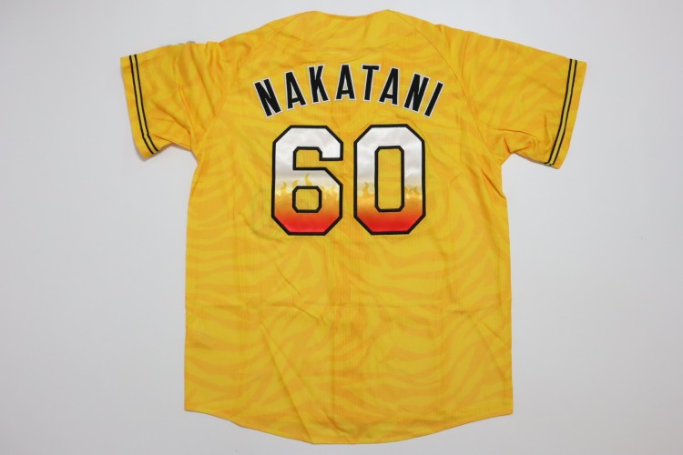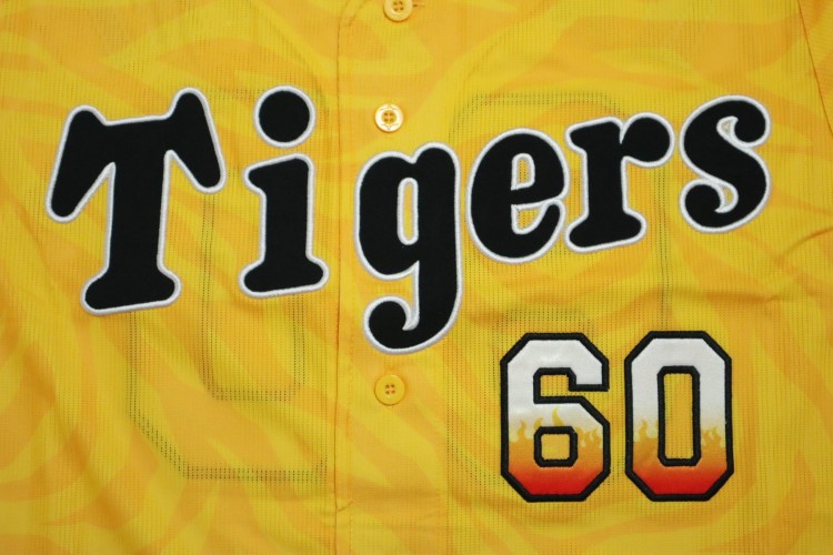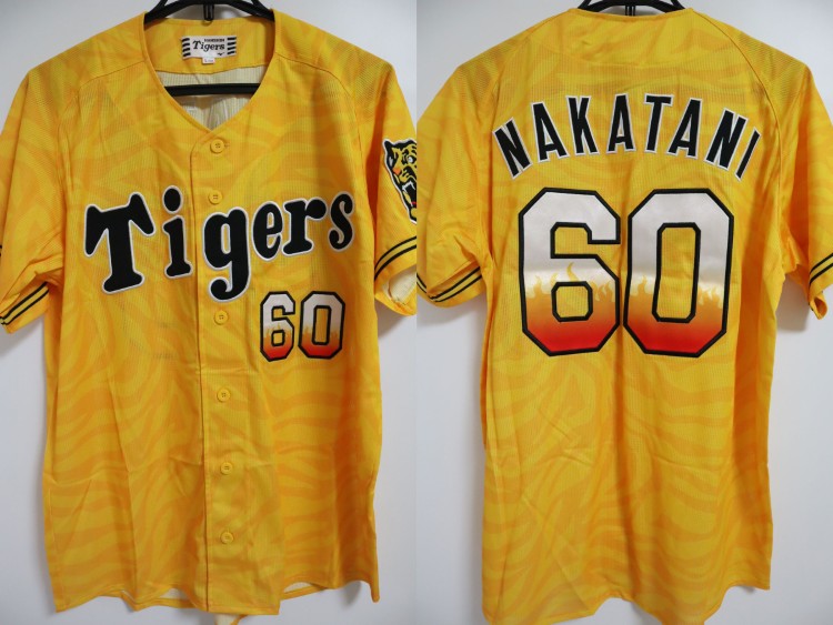 2018 Hanshin Tigers limited third jersey. All of the logos are embroidered on the jersey with Nakatani’s name and his number 60. Players worn this design of the jersey at only 6 limited matches, called Urutora No Natsu” in 2018 season. Made in China, Mizuno Japan official licensed jersey.