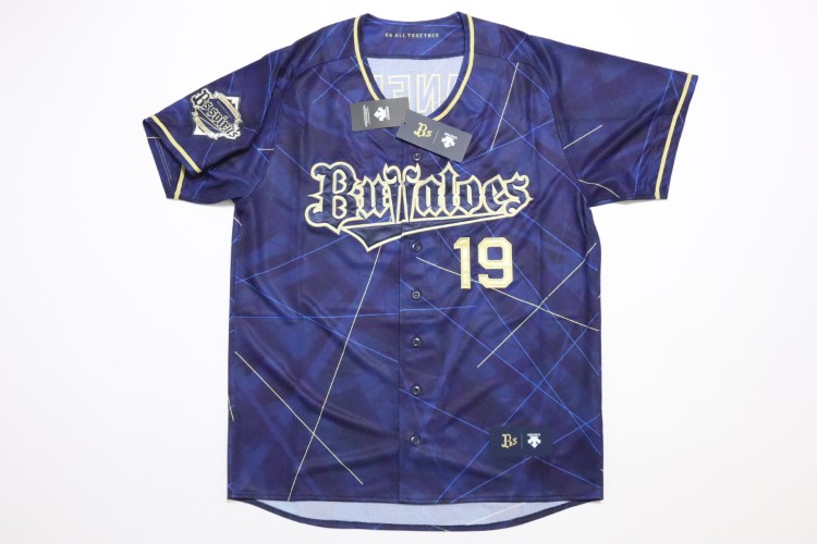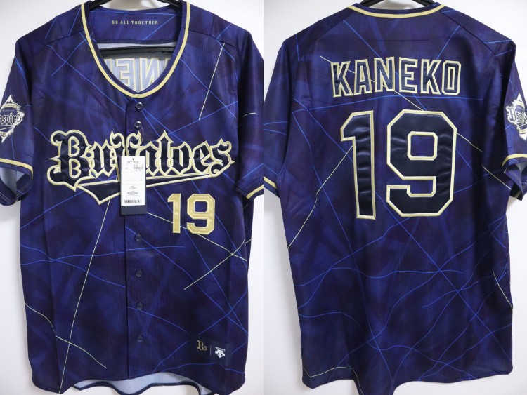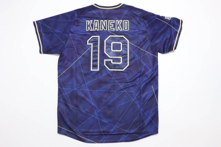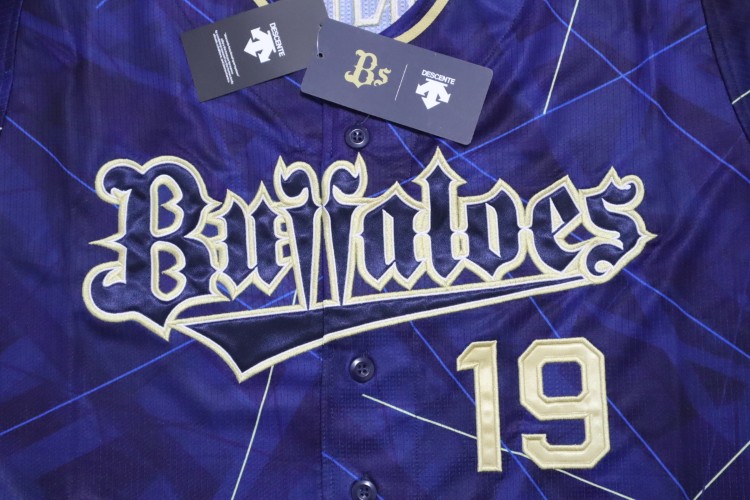 2018 Orix Buffaloes high quality fourth jersey. All of the logos are embroidered on the jersey with Kaneko’s name and his number 34. Players worn this design of the jersey at only 3 limited home matches, called “Bs Oritachi Day” in 2018 season. Made in China, Descente Japan official licensed jersey.
