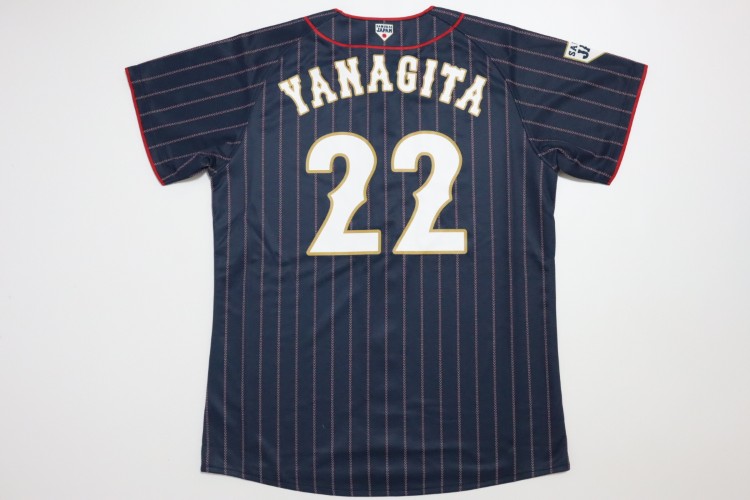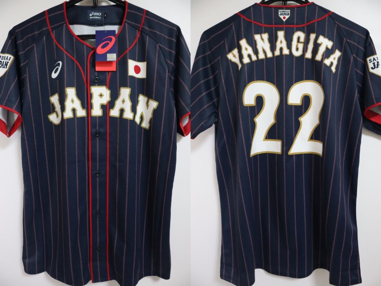 2018 Samurai Japan high quality away baseball jersey. All of the logos are sublimation printing. Rubber material Yanagita’s name and his number 22 are printed on the back. Made in Japan, Asics Japan official licensed item.