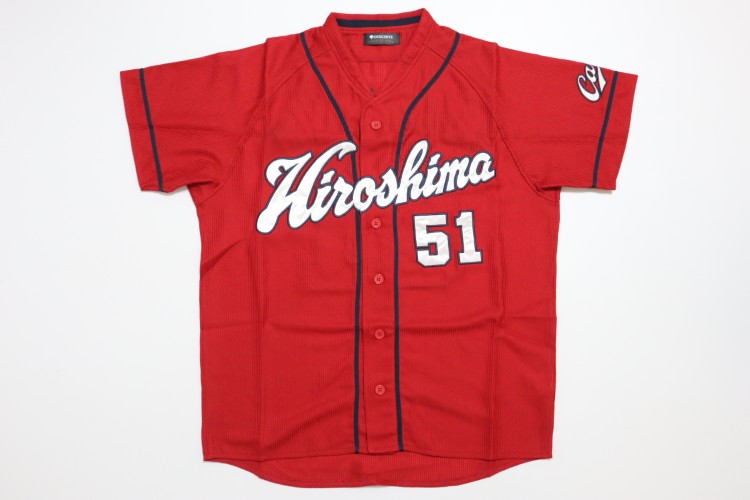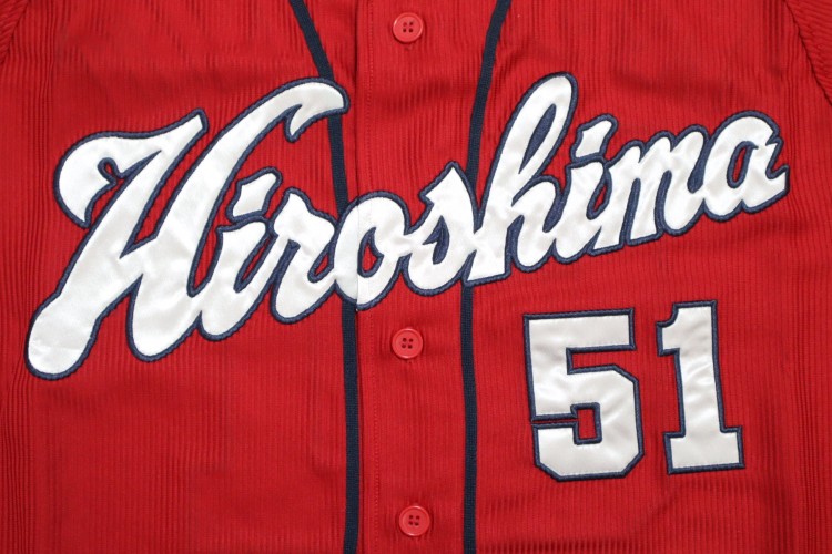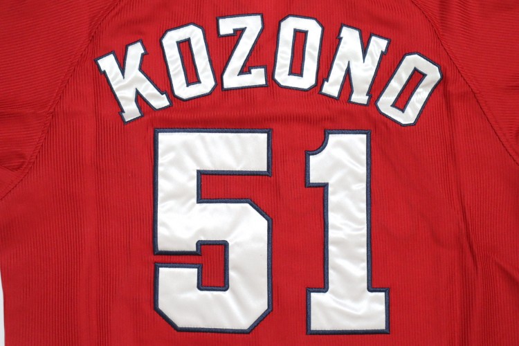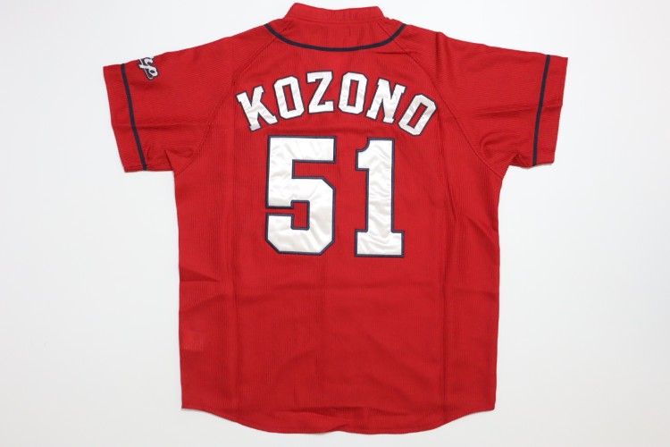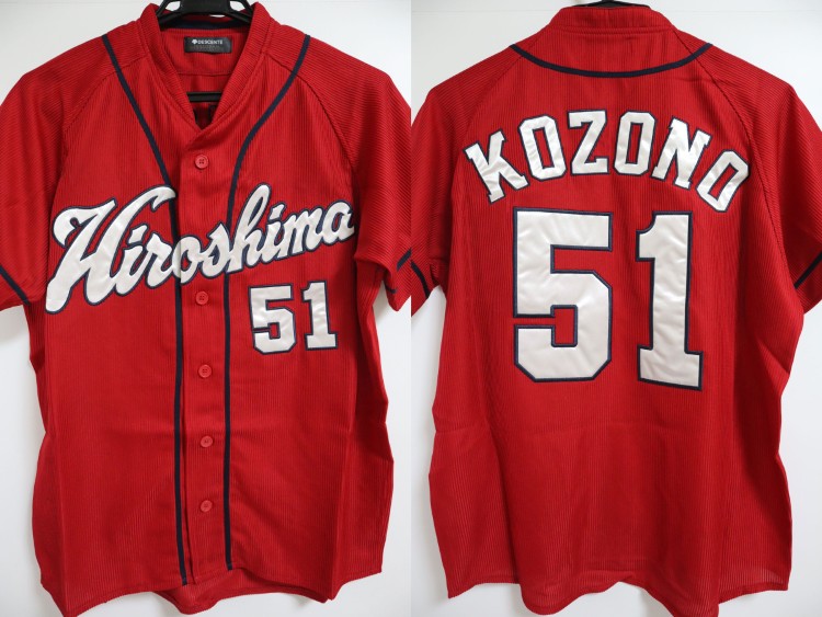 2019-2022 Hiroshima Toyo Carp away high quality jersey. All of the logos are embroidered on the jersey with Kozono’s name and his number 51. Made in China, Descente Japan official licensed jersey.