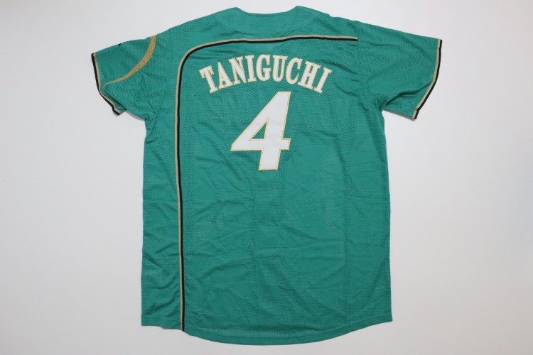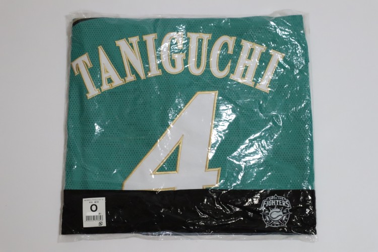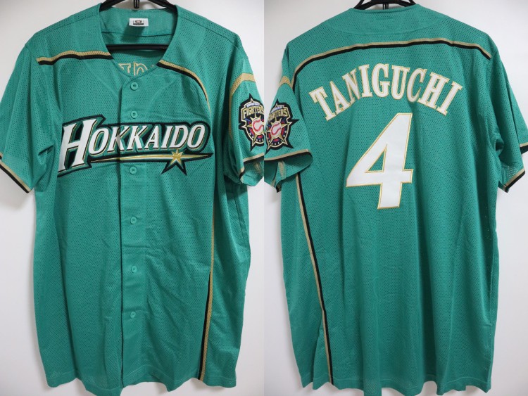 2019 Hokkaido Nippon Ham Fighters third baseball jersey. All of the logos are embroidered on the jersey with Taniguchi’s name and his number 4 on the back. Players worn this design of the jersey at only 8 limited matches, called “We Love Hokkaido” in 2019 season. Made in China, Mizuno Japan official licensed Jersey.