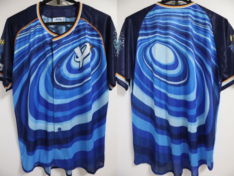 2019 Yokohama DeNA Baystars Third cheap baseball jersey. Players worn this design of the jersey at only 3 home limited matches, called “Star Night” in 2019 season. Made in China Baystars official licensed jersey. Starnight logo could be different color.