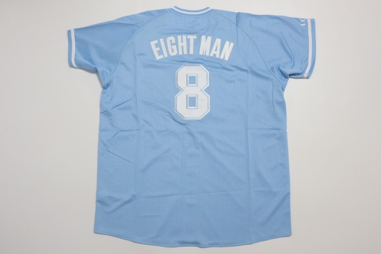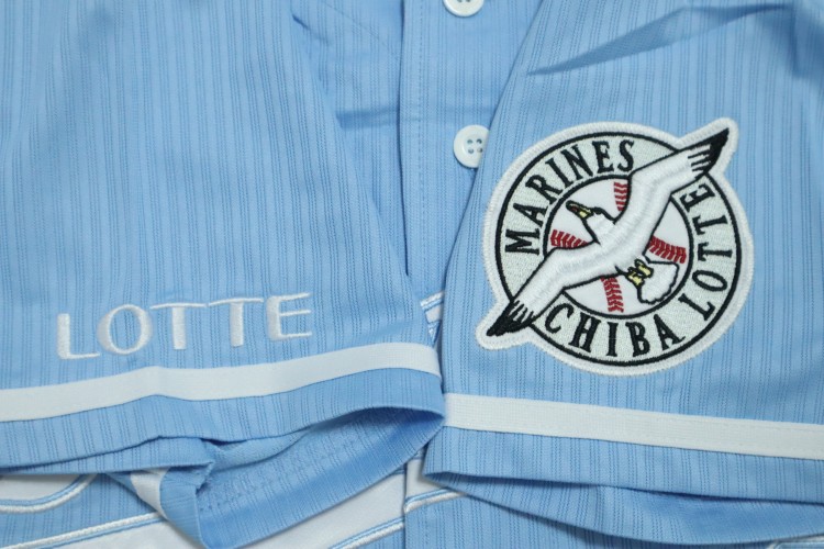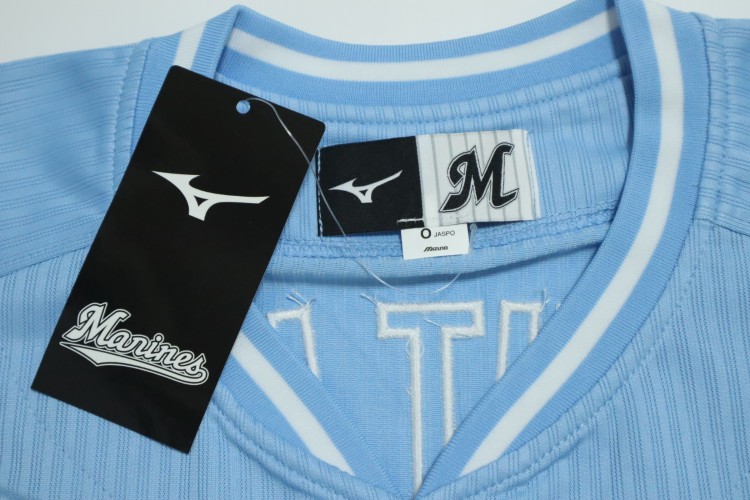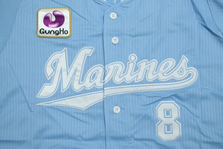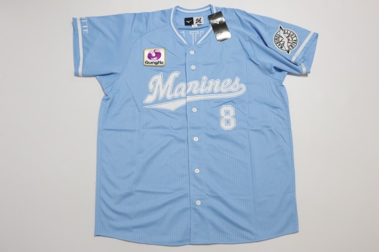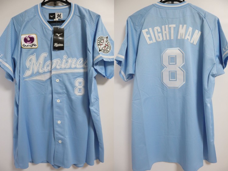 2020 Chiba Lotte Marines Fourth jersey. Players worn this design of the jersey only at several summer matches, called “Marine Festa 2020”. All logos are embroidered on the jersey with Eight Man’s name and his number 8, which is the nick name of Shogo Nakamura. Made in China, Mizuno Japan official licensed jersey.