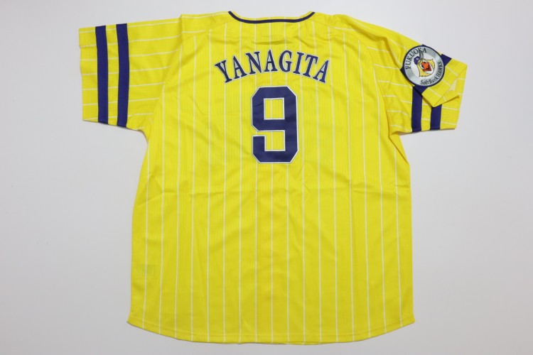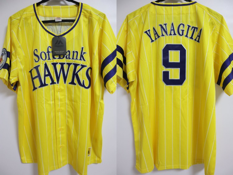 2020 Fukuoka SoftBank Hawks fourth jersey. Yanagita’s name and his number 9 are embroidered on the jersey. Players worn this design of the jersey at only 9 limited matches, called “Takano Saiten” in 2020 season. Made in China, Majestic Japan official licensed jersey.