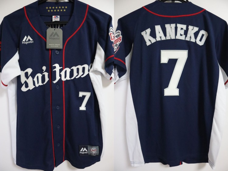 2020 Saitama Seibu Lions away jersey. All of the logos are embroidered on the jersey with Kaneko’s name his number 7. Made in Thailand, Majestic Japan official licensed baseball jersey.