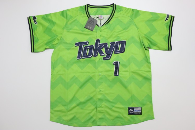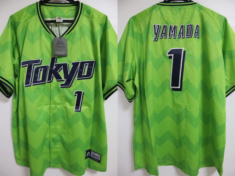 2020 Tokyo Yakult Swallows third jersey. Yamada’s name and his number 1 are embroidered on the jersey. Players worn this design of the jersey at only several limited matches, called “Tsubame Project” in 2020 season. Made in China, Majestic Japan official licensed jersey.