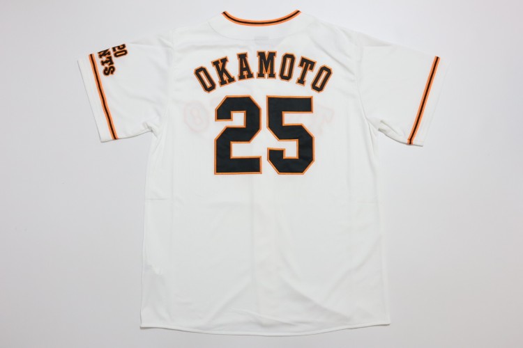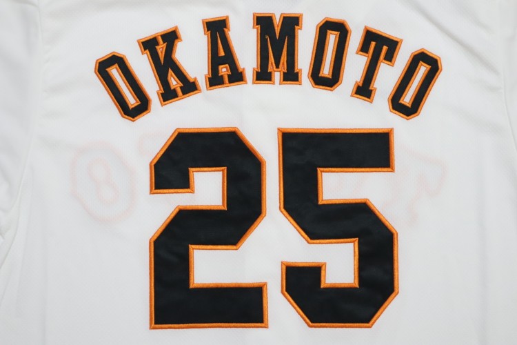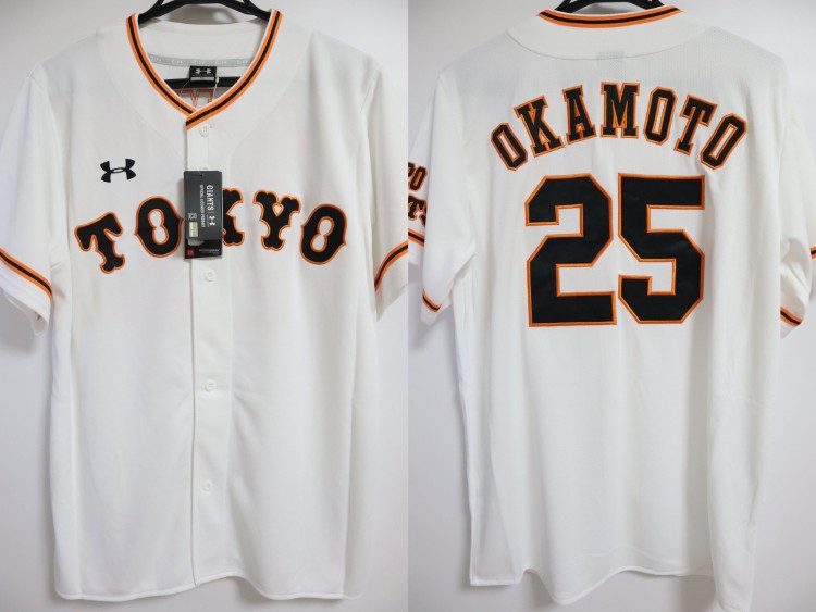2020 Tokyo Yomiuri Giants home jersey. All of the logos are embroidered on the jersey with Okamoto’s name and his number 25. Made in Thailand Under Armour Japan official licensed baseball jersey.