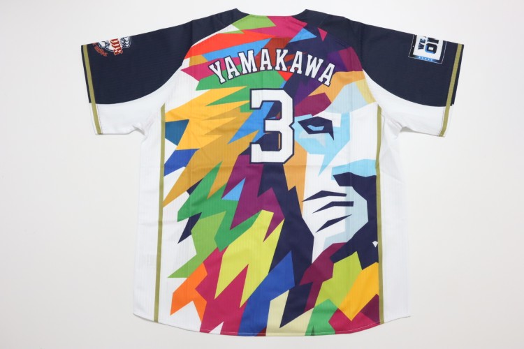 2021 Saitama Seibu Lions third jersey. All of the logos are printed on the jersey with Yamakawa’s name his number 3. They are sublimation print. Players worn this design of the jersey at only 17 limited matches, called Lions Festival 2021. Made in China, Majestic Japan official licensed baseball jersey.