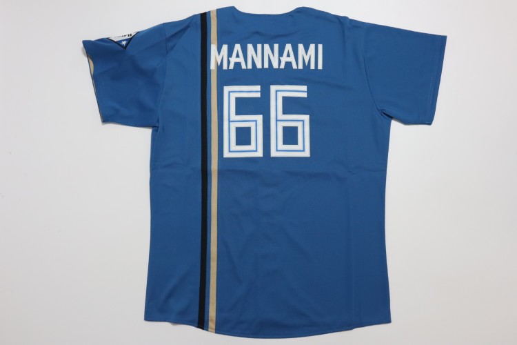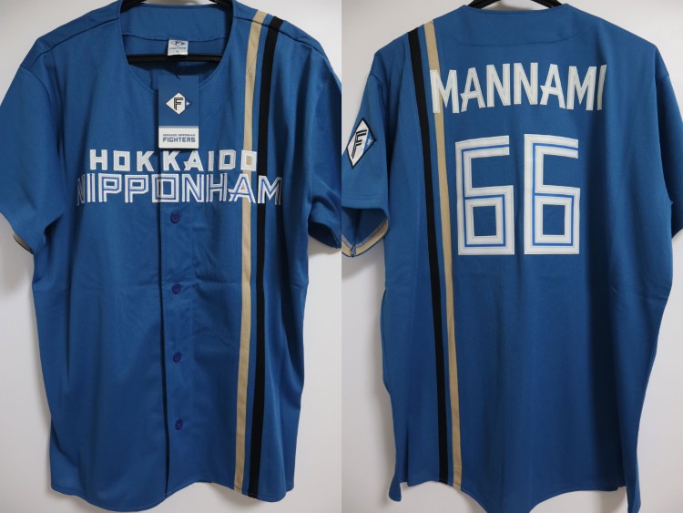 2022-2025 Hokkaido Nippon Ham Fighters away baseball jersey. All of the logos are embroidered on the jersey with heat-pressed Mannami’s name and his number 55 on the back. Made in China, Fanatics Japan official licensed jersey.