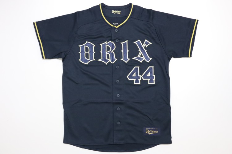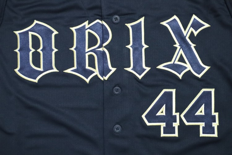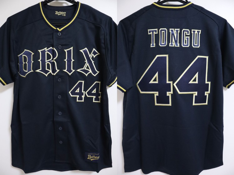 2023-2025 Orix Buffaloes high quality away jersey. All of the logos are embroidered on the jersey with Tongu’s name and his number 44. Buffaloes official licensed jersey.