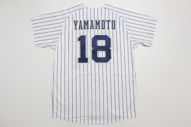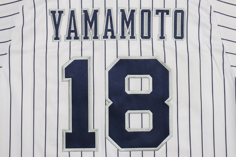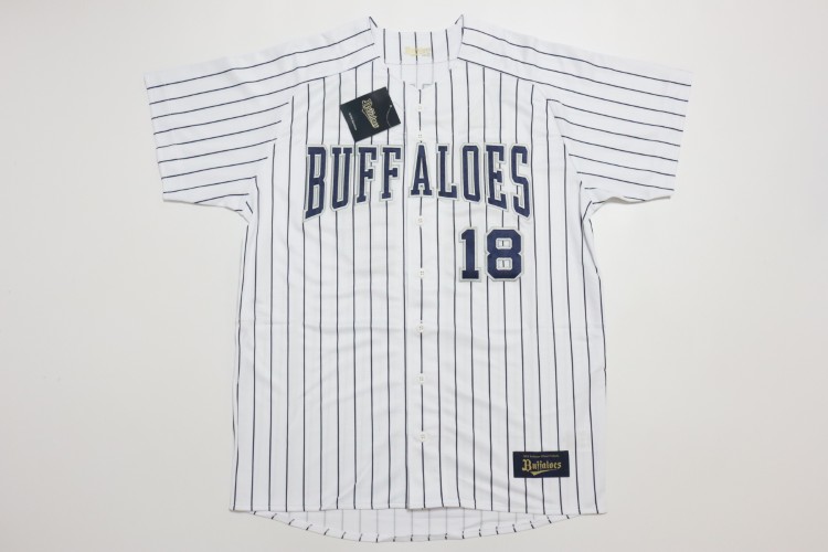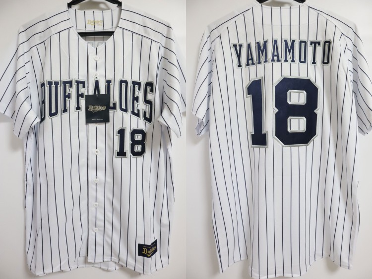 2023 Orix Buffaloes high quality third jersey. All of the logos are embroidered on the jersey with Yamamoto’s name and his number 18. Buffaloes official licensed jersey.