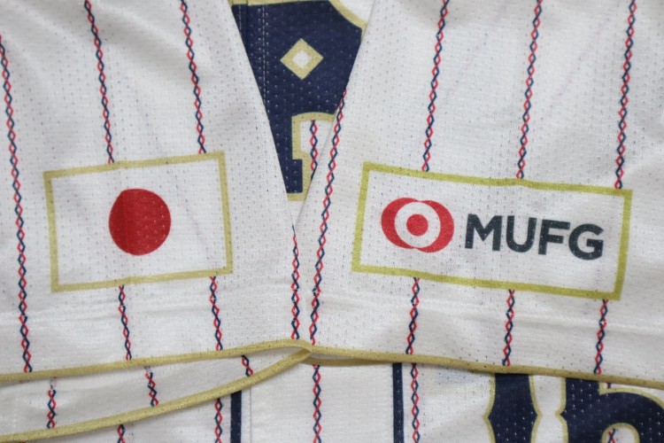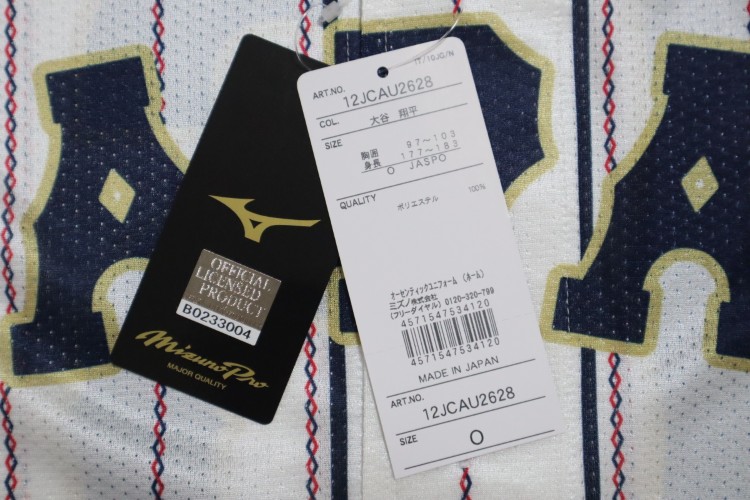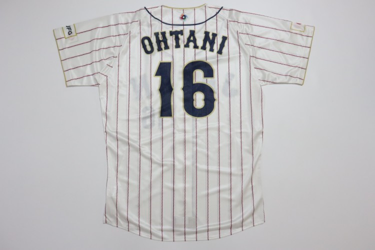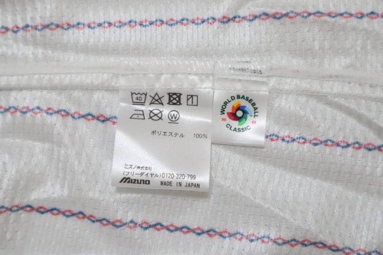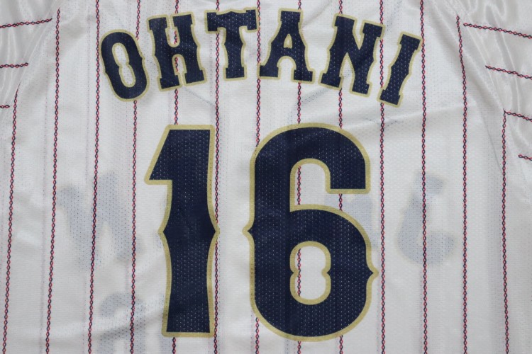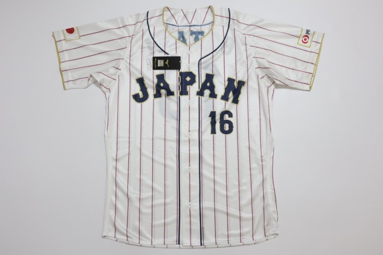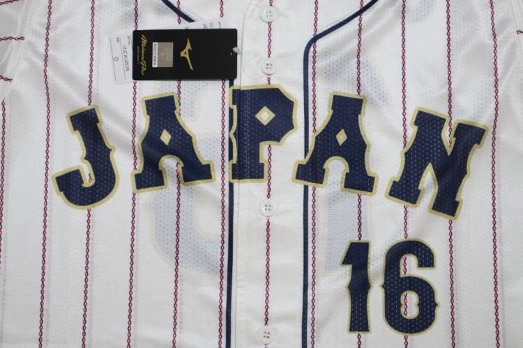 2023 Samurai Japan player issue professional home jersey. Except WBC logo, all of the logos are printed on the jersey with Ohtani’s name and his number 16. They are sublimation print. Made in Japan, Mizuno Japan official licensed jersey.