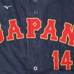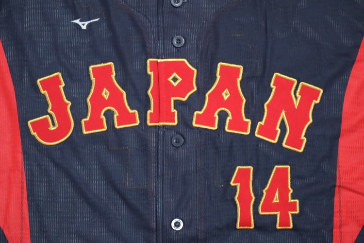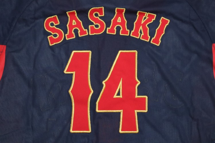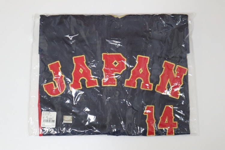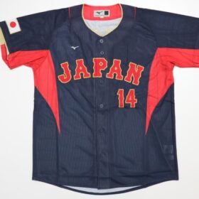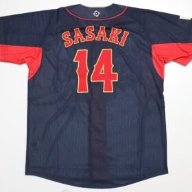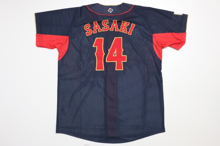2023 Samurai Japan high quality away jersey. JAPAN letters, WBC logo, Sasaki’s name and his number 14 are embroidered on the jersey. Made in China, Mizuno Japan official licensed jersey.