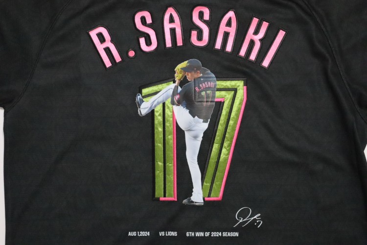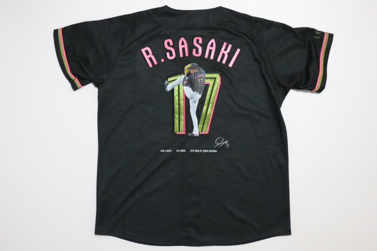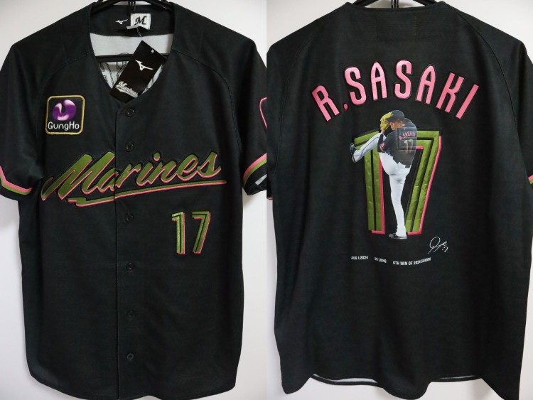 2024 Chiba Lotte Marines limited fourth jersey. All of the logos are embroidered on the jersey with R.Sasaki’s name, his number 17 and special print on the back. Made in China, Mizuno Japan official licensed jersey.