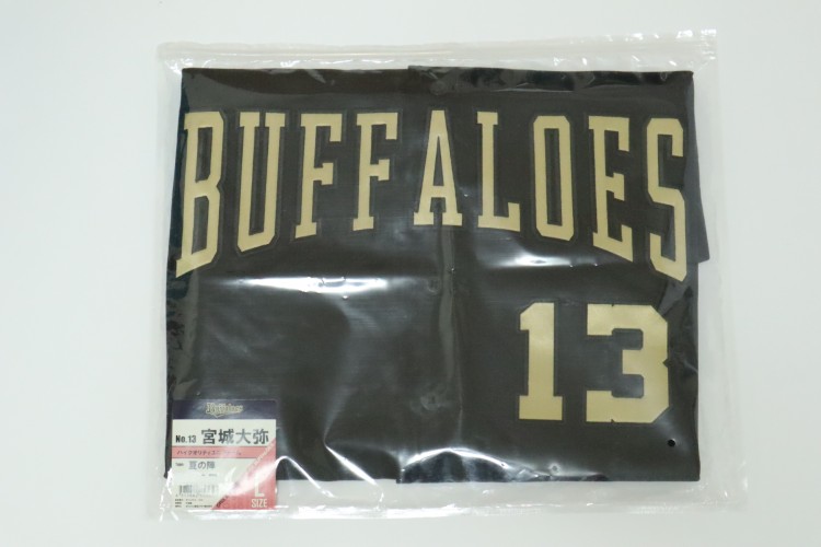 2024 Orix Buffaloes high quality fourth jersey. All of the logos are embroidered on the jersey with Miyagi’s name and his number 13. Made in China Buffaloes official licensed jersey.