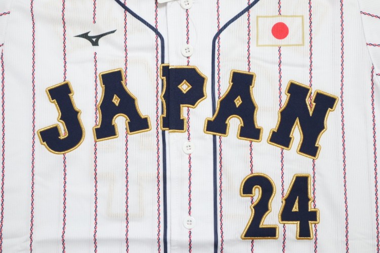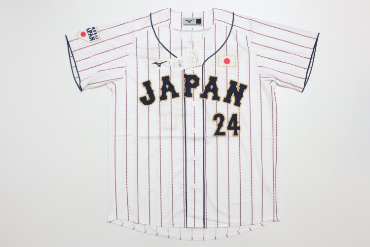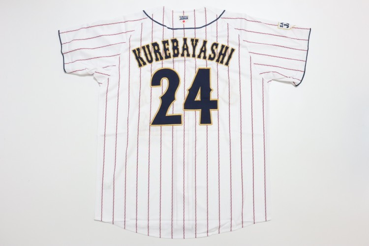 2024 Samurai Japan high quality home jersey. Kurebayashi’s name and his number 24 are embroidered on the jersey. Made in China, Mizuno Japan official licensed jersey.