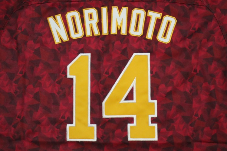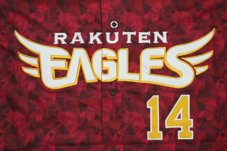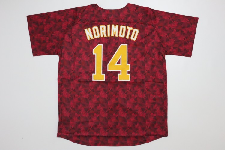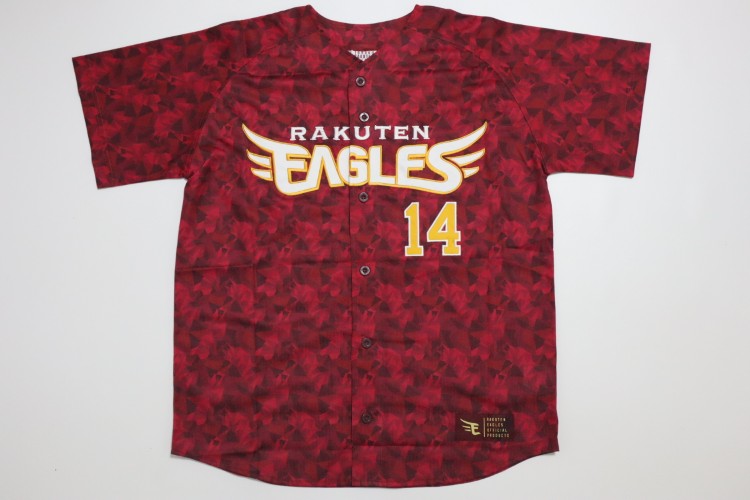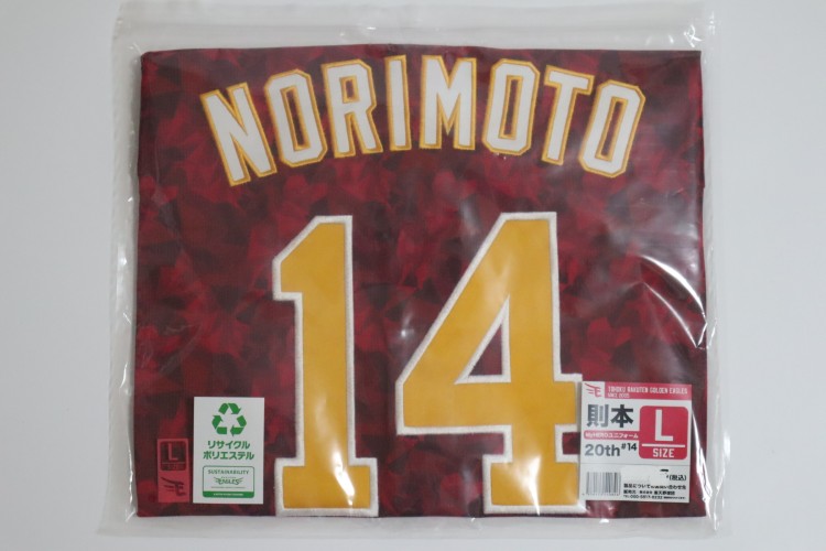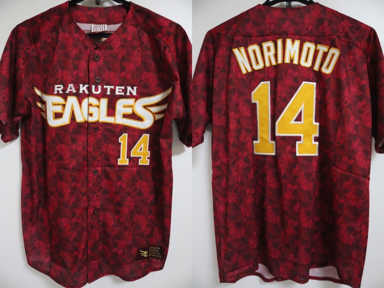 2024 Tohoku Rakuten Golden Eagles 20th anniversary fourth jersey. Players worn this jersey at only 4 home matches, called “20th Thanks Match”. Norimoto’s name and his number 14 are embroidered on the jersey. Made in China Eagles official licensed jersey.