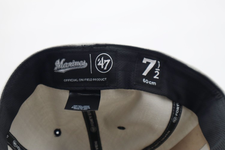 2025 Chiba Lotte Marines player third baseball cap. The team, 47 and NPB logos are embroidered on the hat. Made in China, 47 MVP DP official licensed baseball cap.