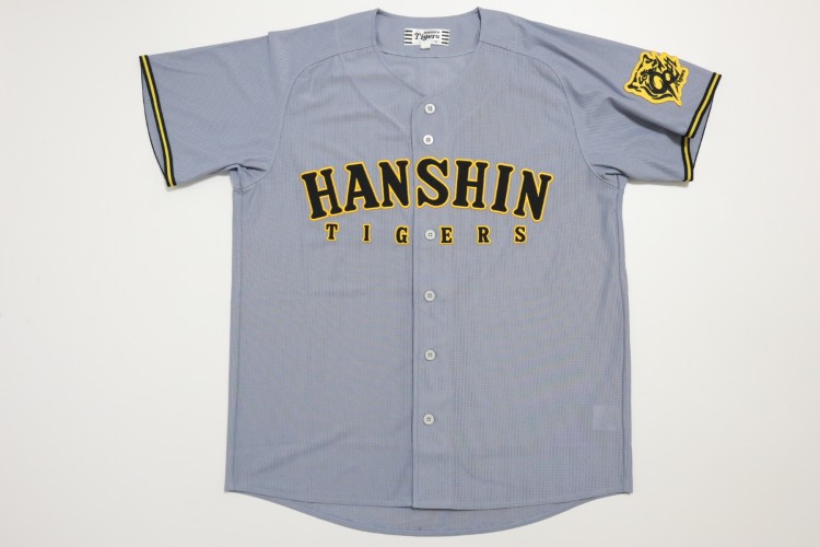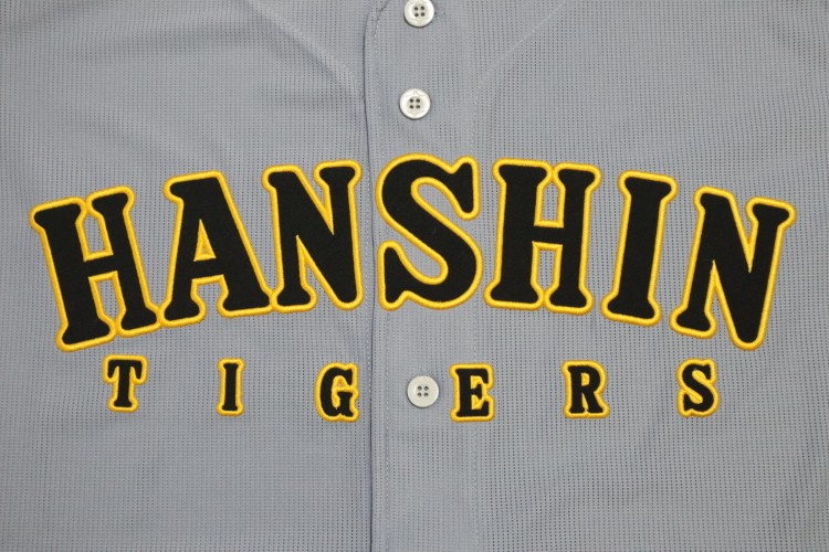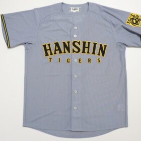 2025 Hanshin Tigers away baseball jersey. All of the logos are embroidered on the jersey. Made in China, Mizuno Japan official licensed jersey.