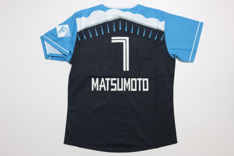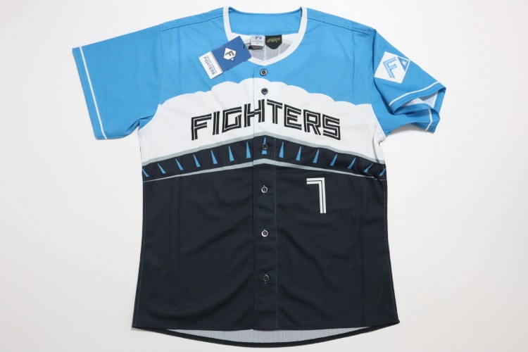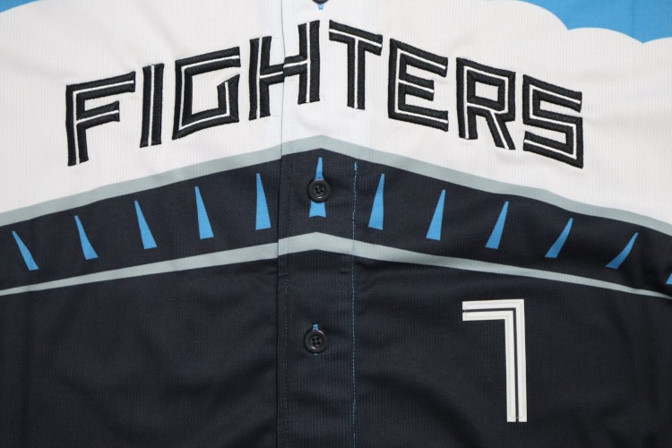2025 Hokkaido Nippon Ham Fighters third baseball jersey. Players wear this design of the jersey only at 8 limited home matches, called “ES CON FIELD HOKKAIDO 2025 Series”. All of the logos are embroidered on the jersey with heat-pressed Matsumoto’s name and his number 7 on the back. Made in China, Fanatics Japan official licensed jersey.