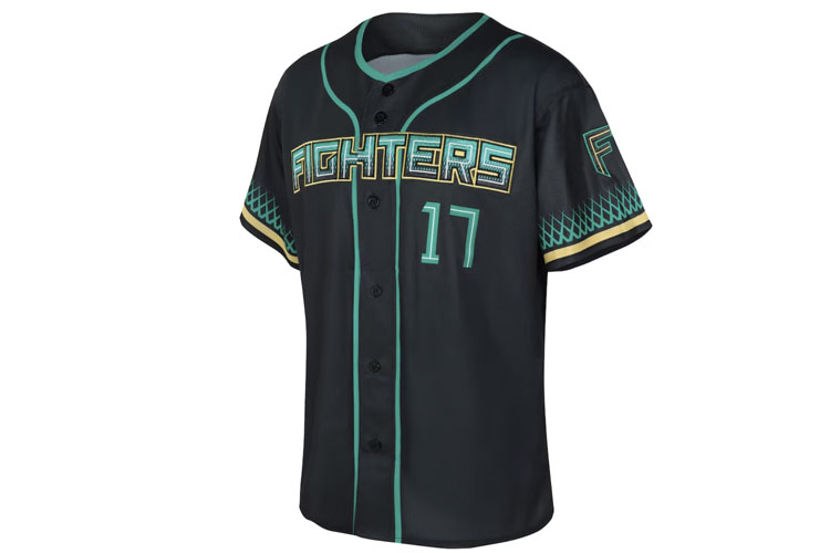 2026 Hokkaido Nippon Ham Fighters third baseball jersey. Players wear this design of the jersey only at 8 limited home matches, called “ES CON FIELD HOKKAIDO 2026 Series”. All of the logos are embroidered on the jersey with heat-pressed Itoh’s name and his number 17 on the back. Made in China, Fanatics Japan official licensed jersey.