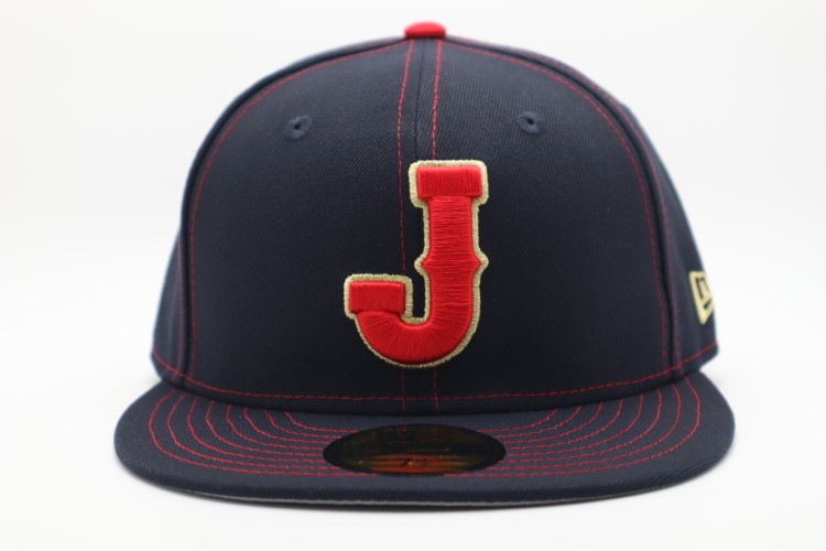 2026 Samurai Japan New Era 59FIFTY flat baseball cap. The team and World Baseball Classic patches are embroidered on the hat. Made in China, NEW ERA Japan official licensed baseball cap.