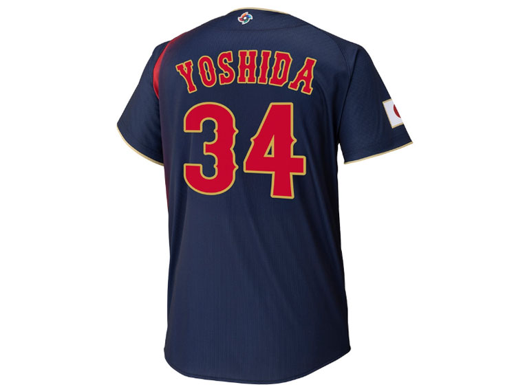 2026 Samurai Japan World Baseball Classic away jersey. Yoshida’s name and his number 34 are embroidered on the jersey. Made in China, Mizuno Japan official licensed jersey.