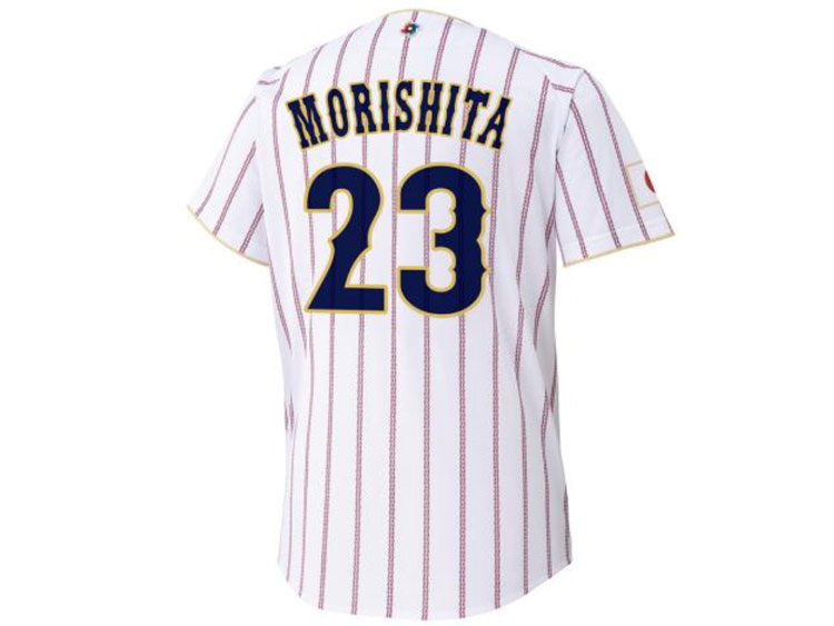 2026 Samurai Japan World Baseball Classic home jersey. Morishita’s name and his number 23 are embroidered on the jersey. Made in China, Mizuno Japan official licensed jersey.