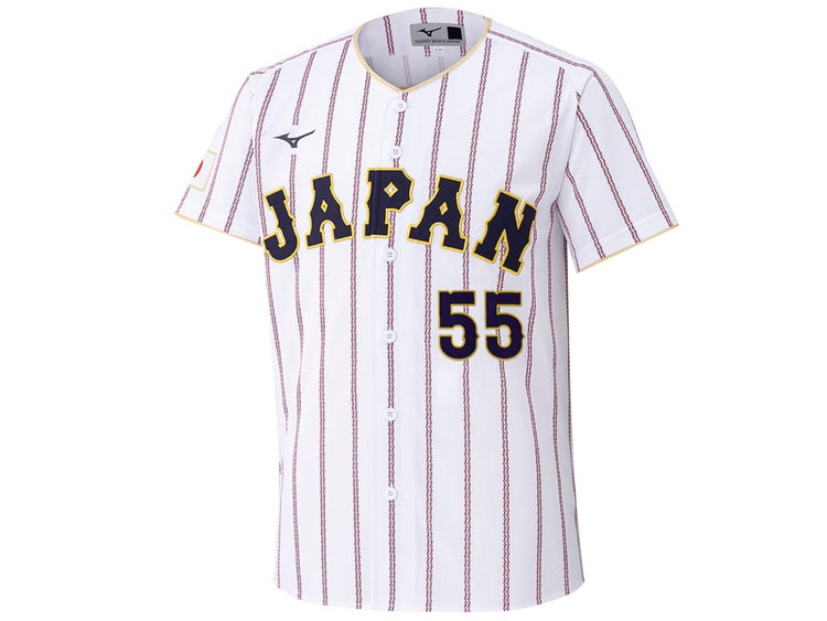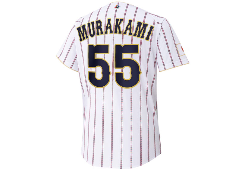 2026 Samurai Japan World Baseball Classic home jersey. Murakami’s name and his number 55 are embroidered on the jersey. Made in China, Mizuno Japan official licensed jersey.