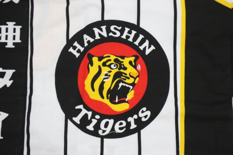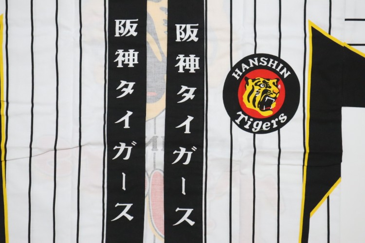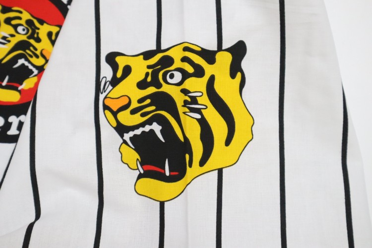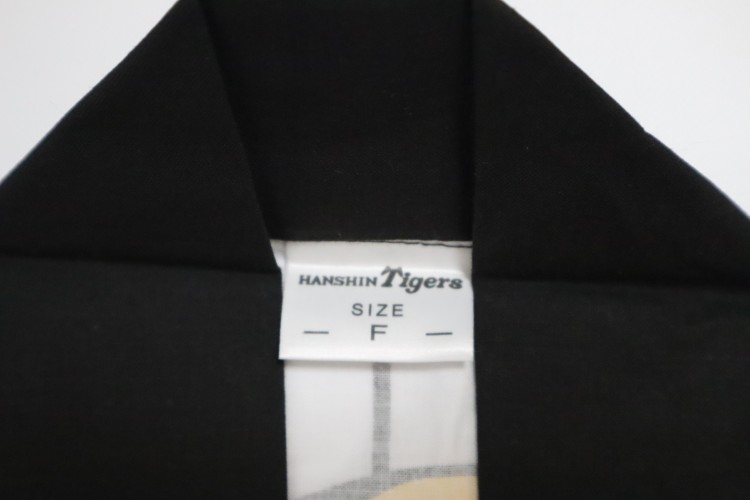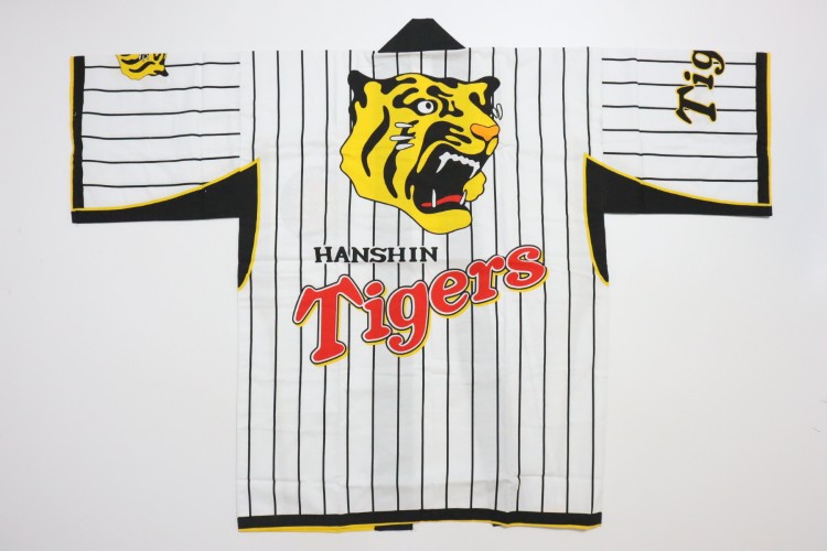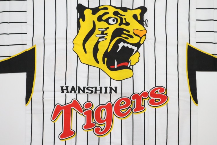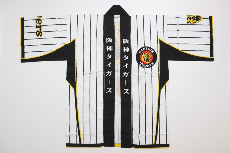 Hanshin Tigers Black & White Stripe happi coat. Tigers team log is drawn on the back.