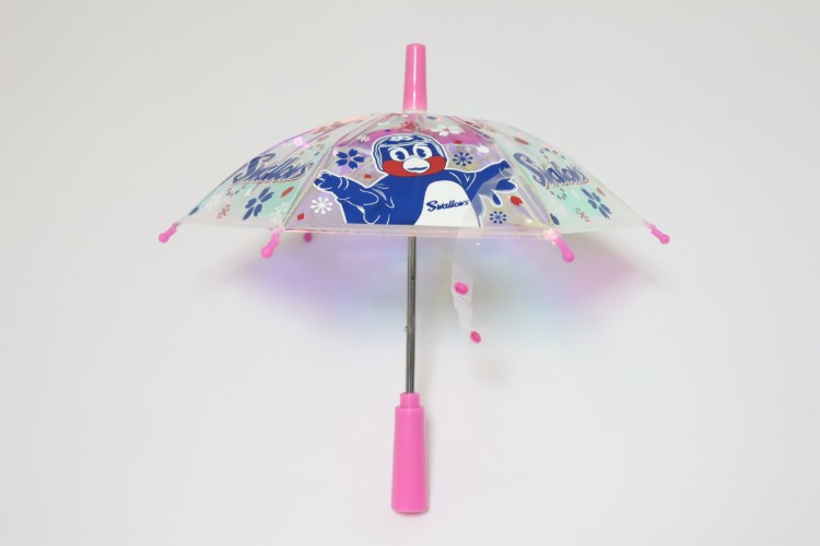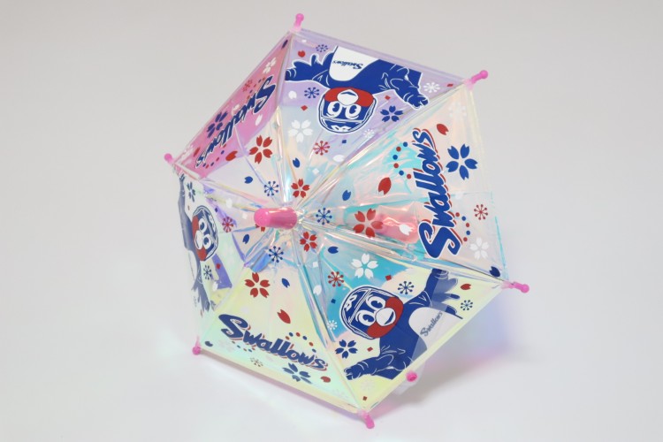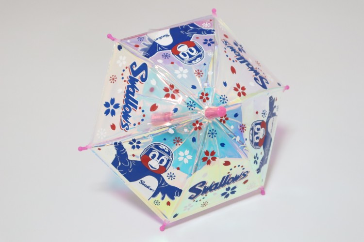 Tokyo Yakult Swallows mini plastic umbrella pink cherry blossom blizzard. It’s a must-have item for Swallows fans as lots of umbrellas bobbed up and down at the stadium before the top of the seventh inning to the rhythm of “Tokyo Ondo”, which is Yakult Swallows thema song.