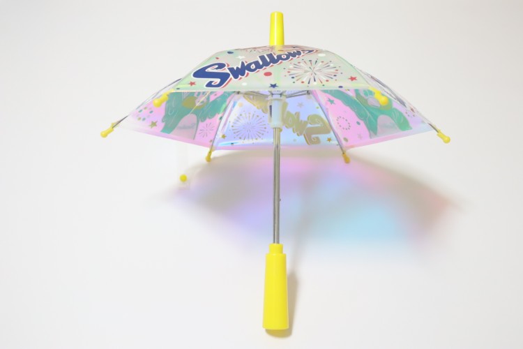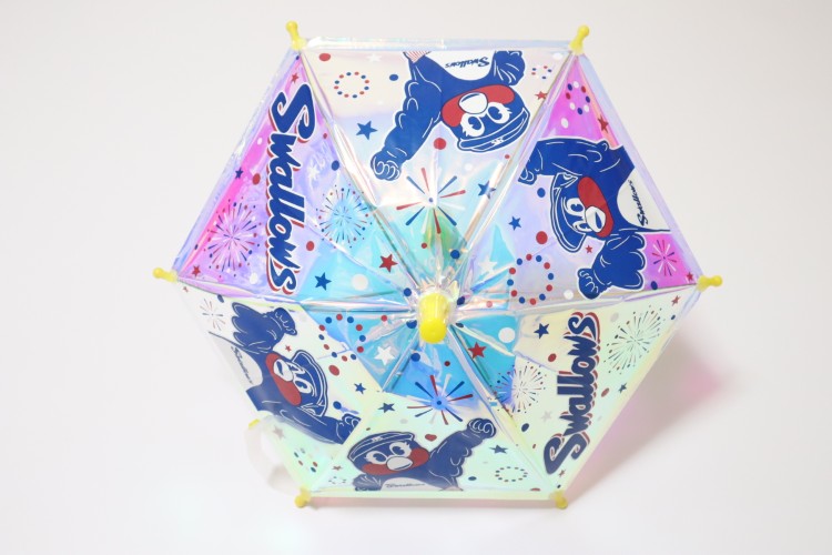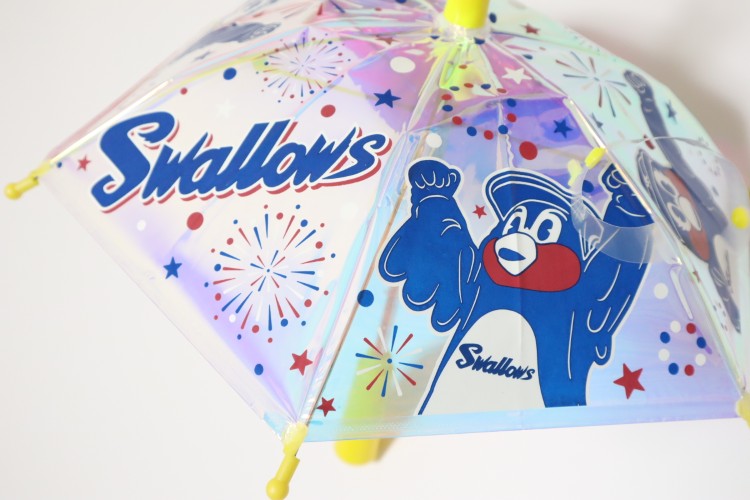 Tokyo Yakult Swallows mini plastic umbrella yellow. It’s a must-have item for Swallows fans as lots of umbrellas bobbed up and down at the stadium before the top of the seventh inning to the rhythm of “Tokyo Ondo”, which is Yakult Swallows thema song.